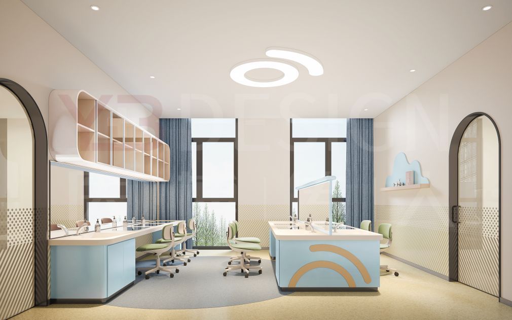 明润眼科医院的室内设计风格以现代简约为主,强调功能性与患者体验的和谐统一。整体采用温和的色彩搭配和柔和的照明,创造出舒适、宁静的医疗环境。设计中巧妙运用流畅的线条和圆润的形状,旨在软化医疗空间的严肃感,同时注入科技感和时尚元素。空间布局注重人体工程学原理,确保了医疗操作的高效性和患者的便捷性。整体设计体现了对患者视觉和心理体验的细致考虑,既展示了医院的专业形象,也提供了温馨的治疗和等待空间。