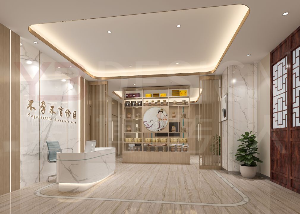 不孕不育科等候区: 温暖的照明和自然木元素的使用营造了一个支持性的环境。布局促进了隐私性和沉思,舒适的座椅让患者在等待咨询时能够放松。