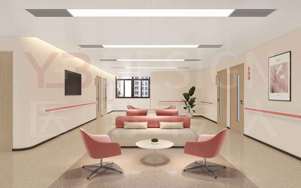 妇科诊室: 色彩的运用旨在营造一个温暖而亲切的空间。室内布局注重隐私和舒适,同时现代化的医疗设施确保了高效的诊疗活动。